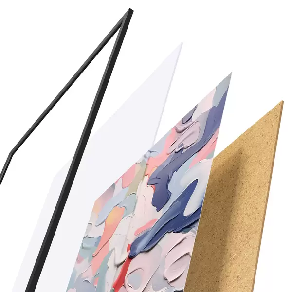 Das Poster besteht aus einem Rahmen, Plexiglas, einem gedruckten Bild und einer Rückwand aus Spanplatten. Dank der Halterungen auf der Rückseite kann das Poster sofort an die Wand gehängt werden.