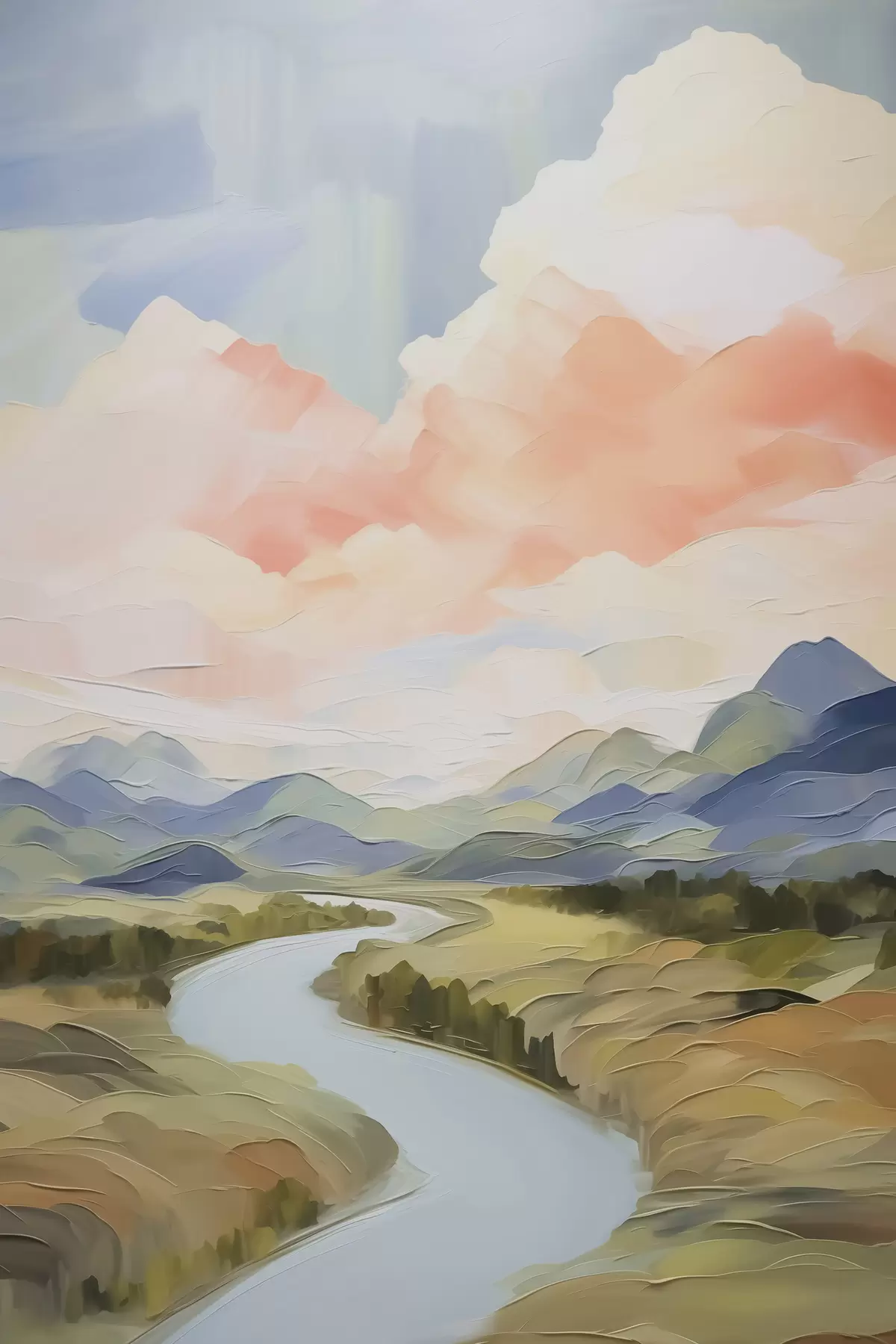 Poster Fluss im Tal Landschaft Nachahmung der Malerei Nr f42844