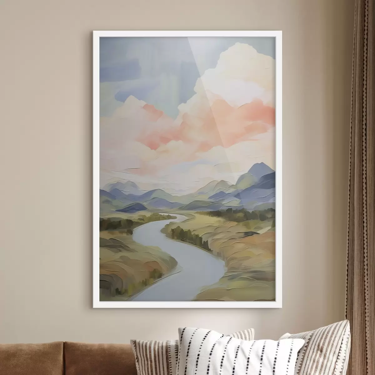 Poster Fluss im Tal Landschaft Nachahmung der Malerei f42844