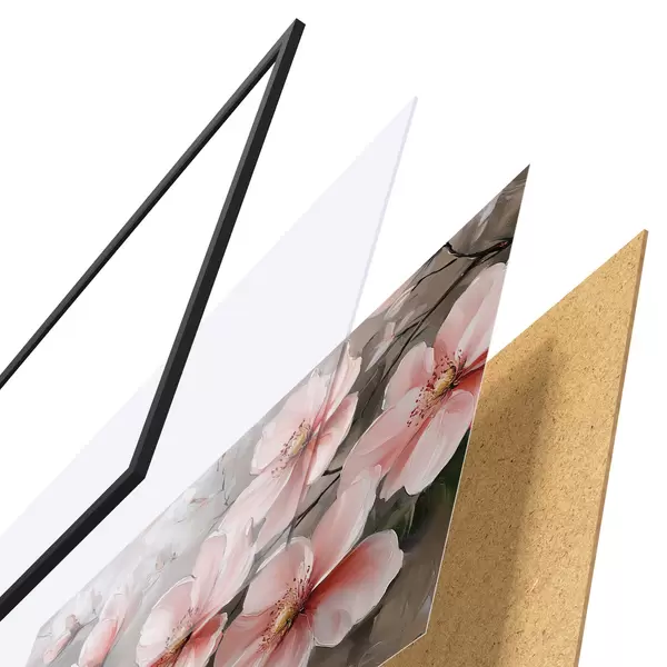 Das Poster besteht aus einem Rahmen, Plexiglas, einem gedruckten Bild und einer Rückwand aus Spanplatten. Dank der Halterungen auf der Rückseite kann das Poster sofort an die Wand gehängt werden.