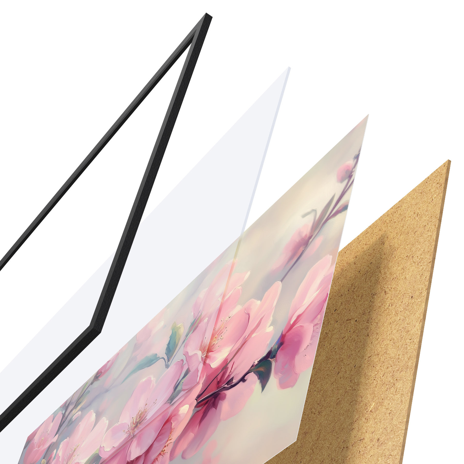 Das Poster besteht aus einem Rahmen, Plexiglas, einem gedruckten Bild und einer Rückwand aus Spanplatten. Dank der Halterungen auf der Rückseite kann das Poster sofort an die Wand gehängt werden.