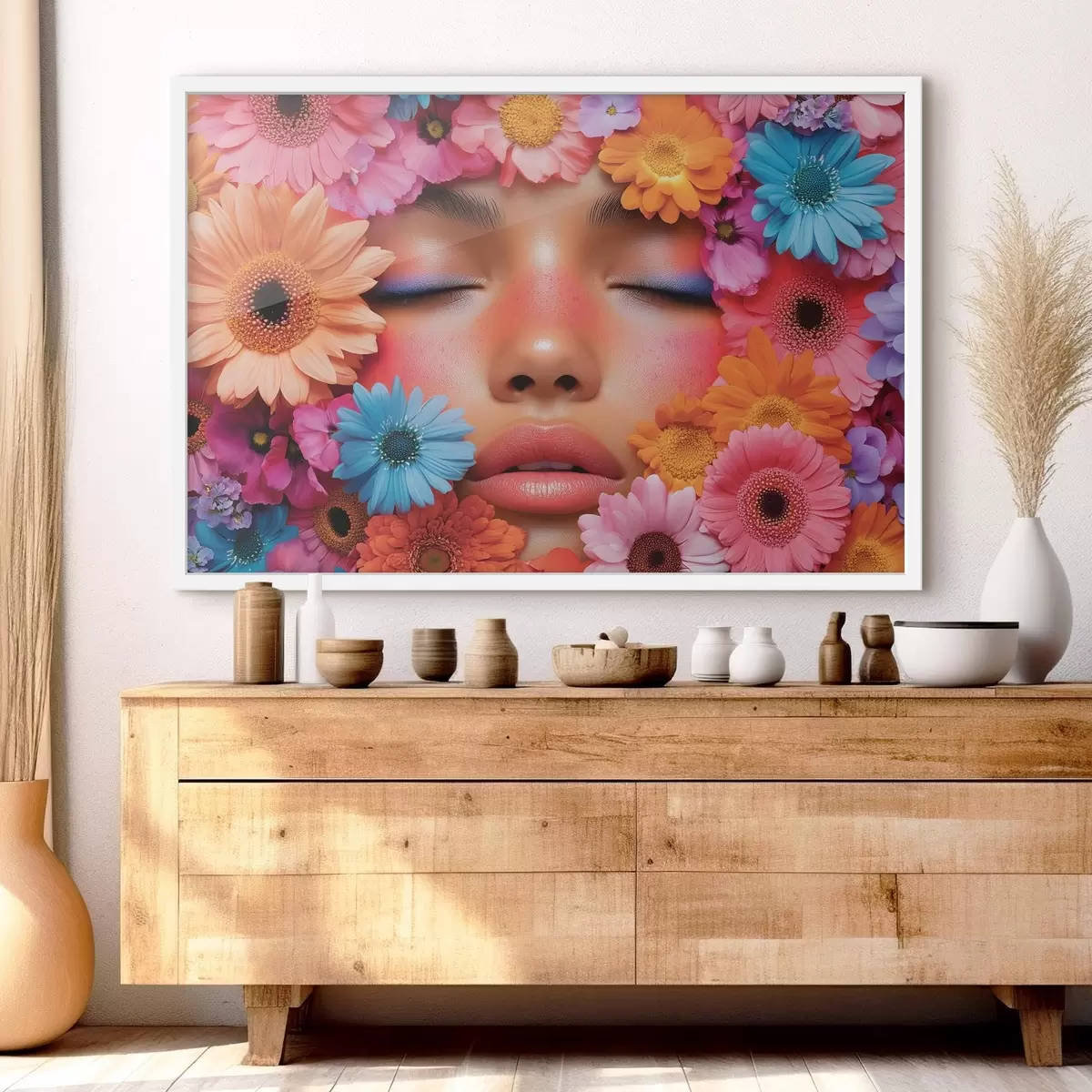 Poster Gesicht eines Mädchens in Blumen Nr f42856