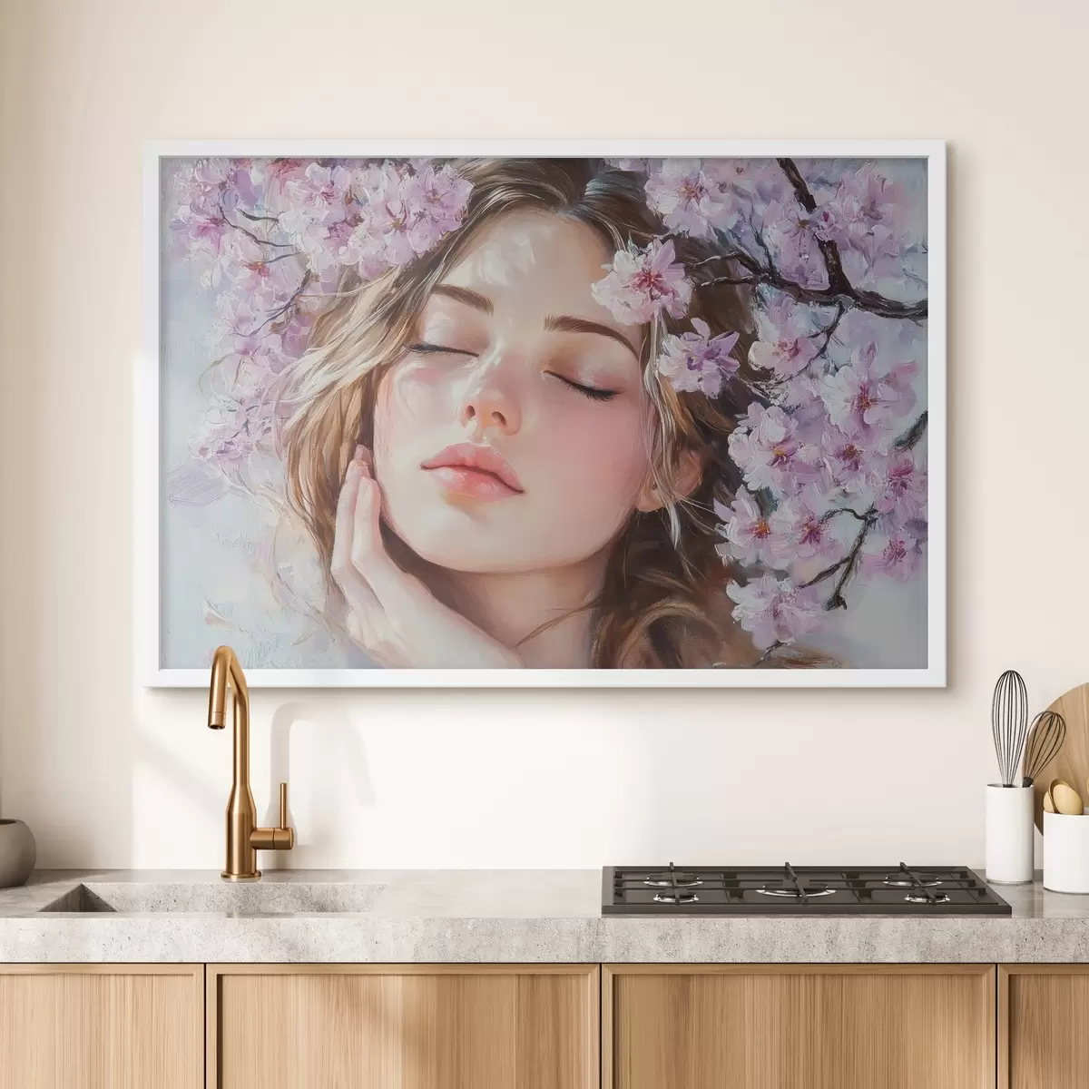 Poster Mädchen in der Nähe eines blühenden Zweigs Nr f42857