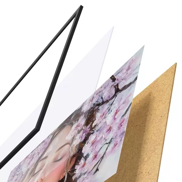 Das Poster besteht aus einem Rahmen, Plexiglas, einem gedruckten Bild und einer Rückwand aus Spanplatten. Dank der Halterungen auf der Rückseite kann das Poster sofort an die Wand gehängt werden.
