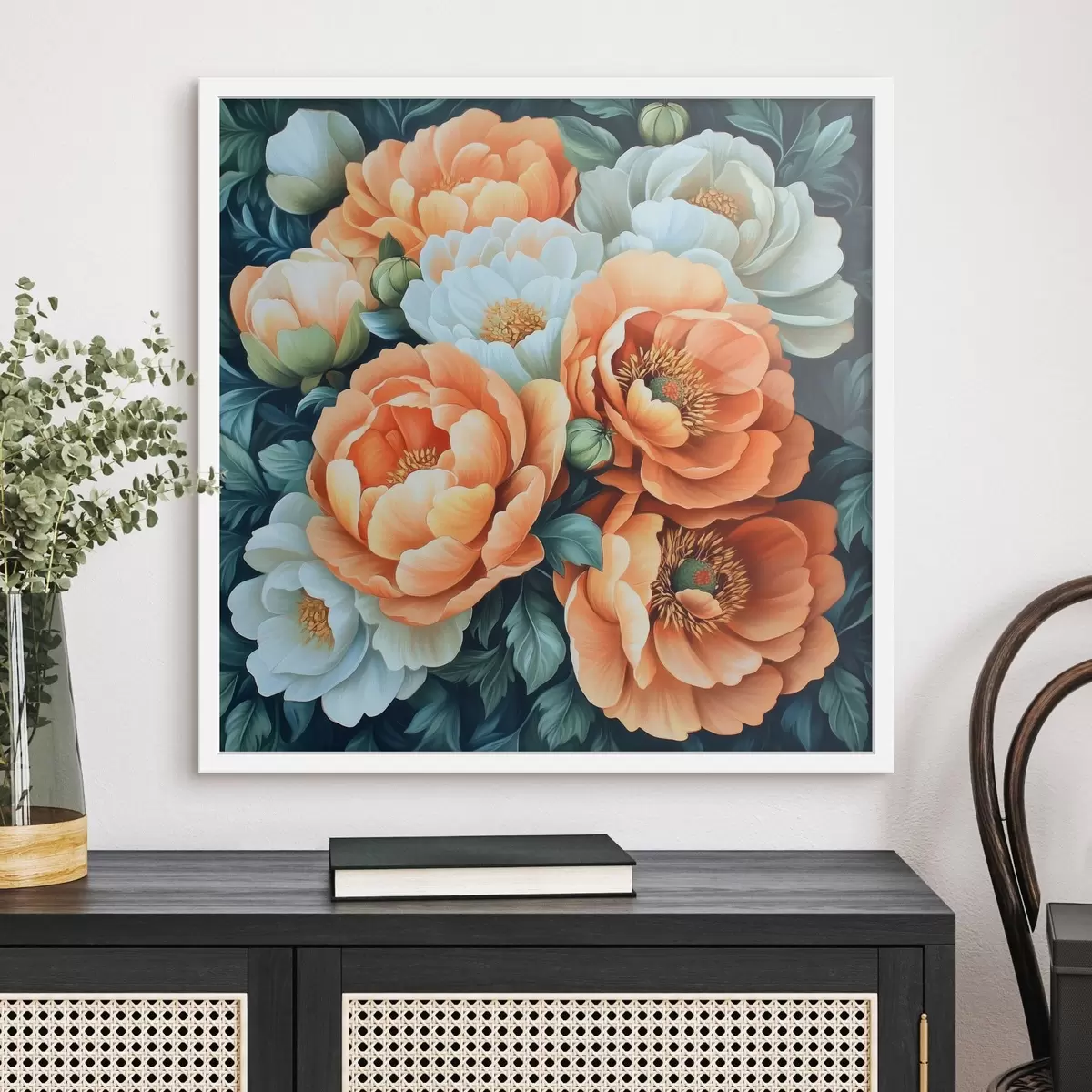 Poster Weiße und orangefarbene Blumen Nr f42860