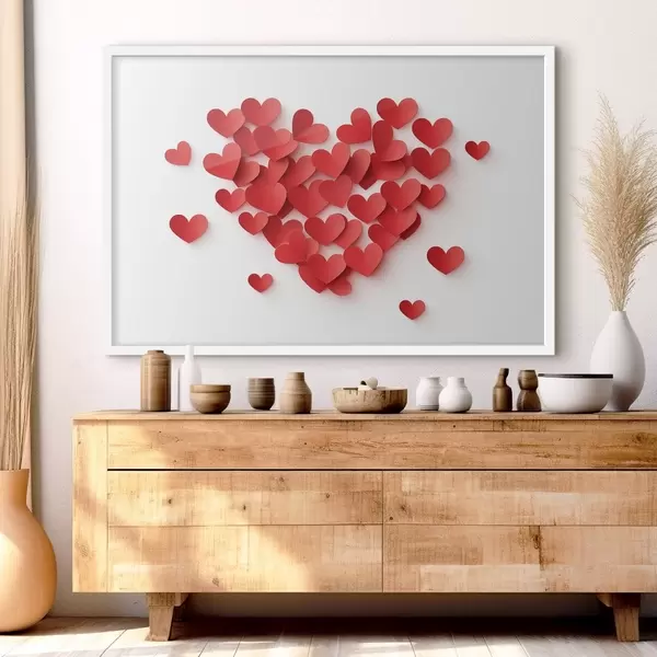 Poster Imitation, volumetrische rote Herzen aus Papier f42870