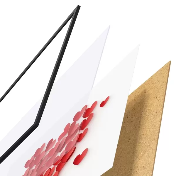Das Poster besteht aus einem Rahmen, Plexiglas, einem gedruckten Bild und einer Rückwand aus Spanplatten. Dank der Halterungen auf der Rückseite kann das Poster sofort an die Wand gehängt werden.