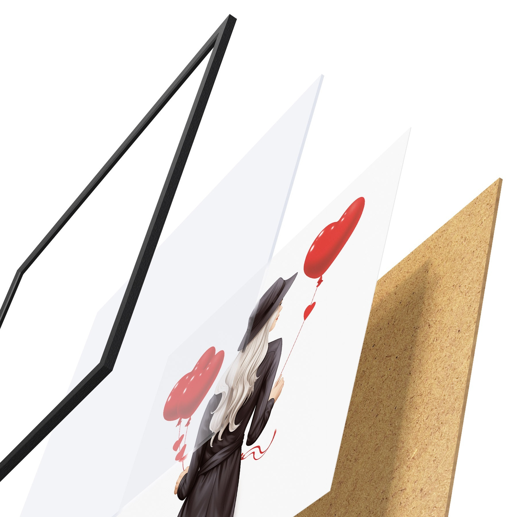 Das Poster besteht aus einem Rahmen, Plexiglas, einem gedruckten Bild und einer Rückwand aus Spanplatten. Dank der Halterungen auf der Rückseite kann das Poster sofort an die Wand gehängt werden.
