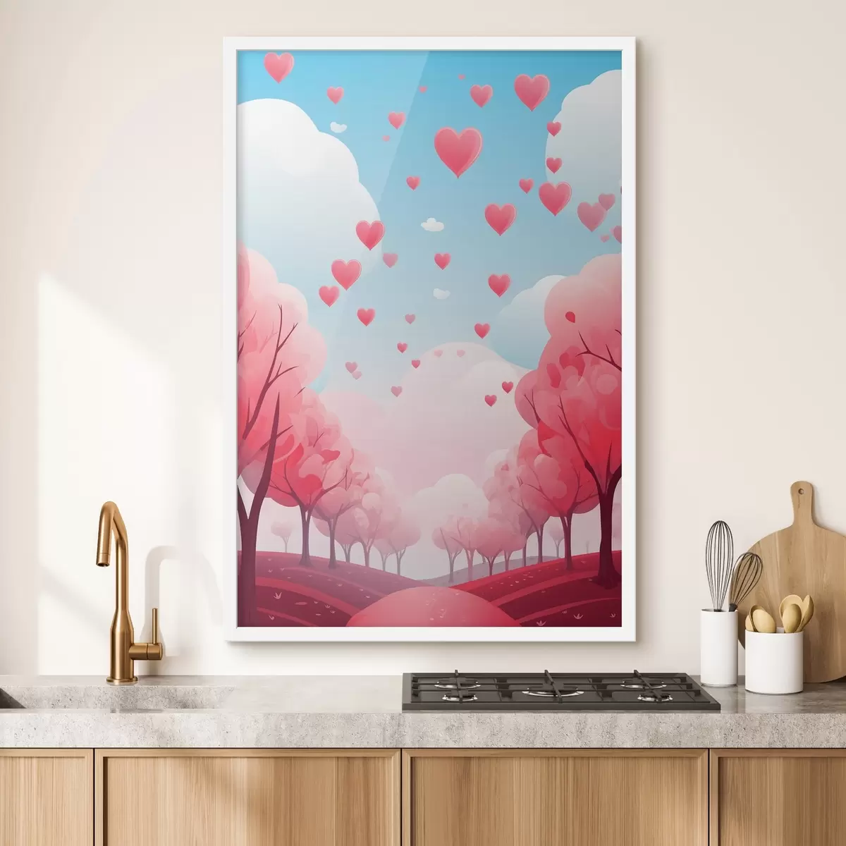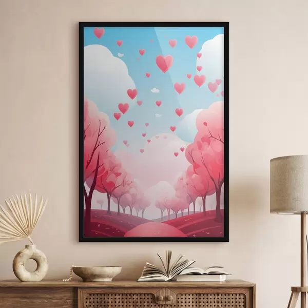 Poster Allee der Liebe, rosa Bäume und Herzen Nr f42876