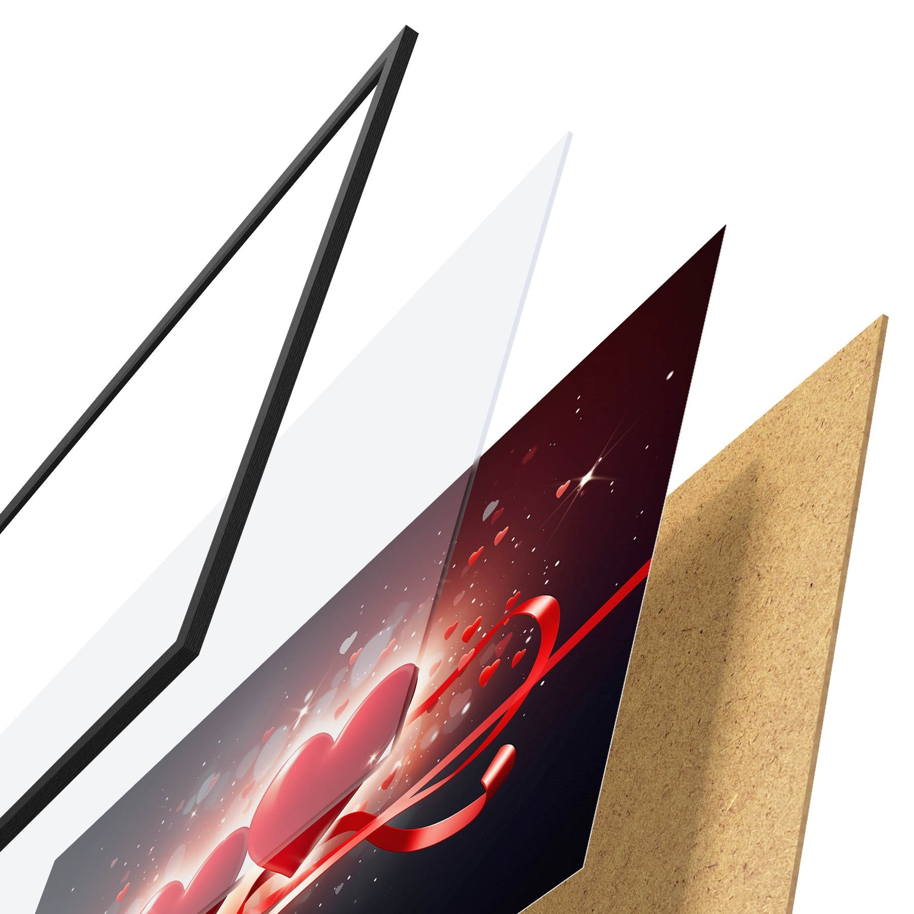 Das Poster besteht aus einem Rahmen, Plexiglas, einem gedruckten Bild und einer Rückwand aus Spanplatten. Dank der Halterungen auf der Rückseite kann das Poster sofort an die Wand gehängt werden.
