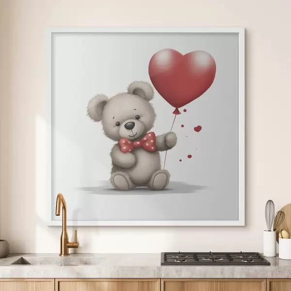 Poster Niedlicher Bär mit rotem Herzballon Nr f42879