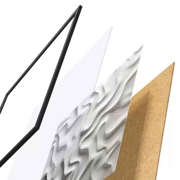 Das Poster besteht aus einem Rahmen, Plexiglas, einem gedruckten Bild und einer Rückwand aus Spanplatten. Dank der Halterungen auf der Rückseite kann das Poster sofort an die Wand gehängt werden.