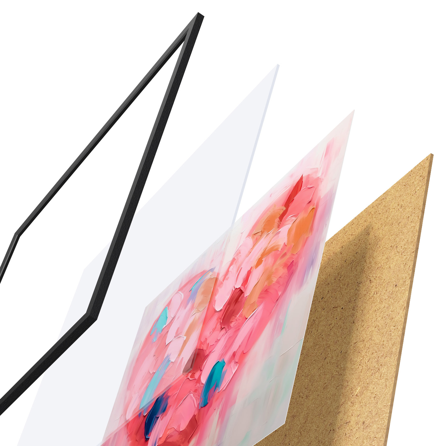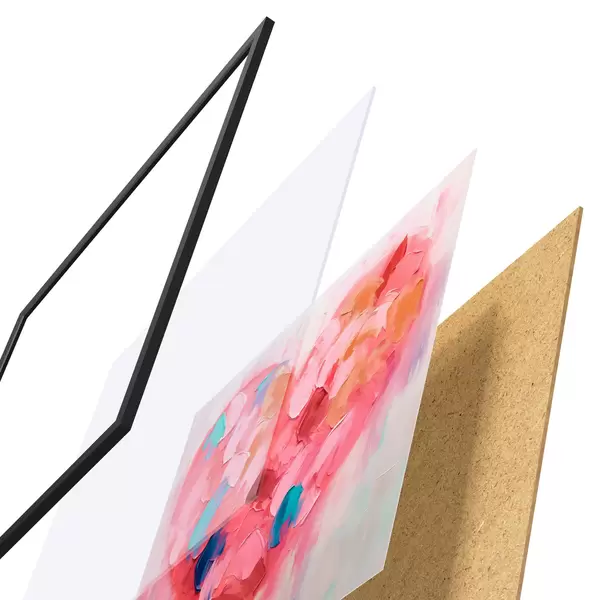 Das Poster besteht aus einem Rahmen, Plexiglas, einem gedruckten Bild und einer Rückwand aus Spanplatten. Dank der Halterungen auf der Rückseite kann das Poster sofort an die Wand gehängt werden.