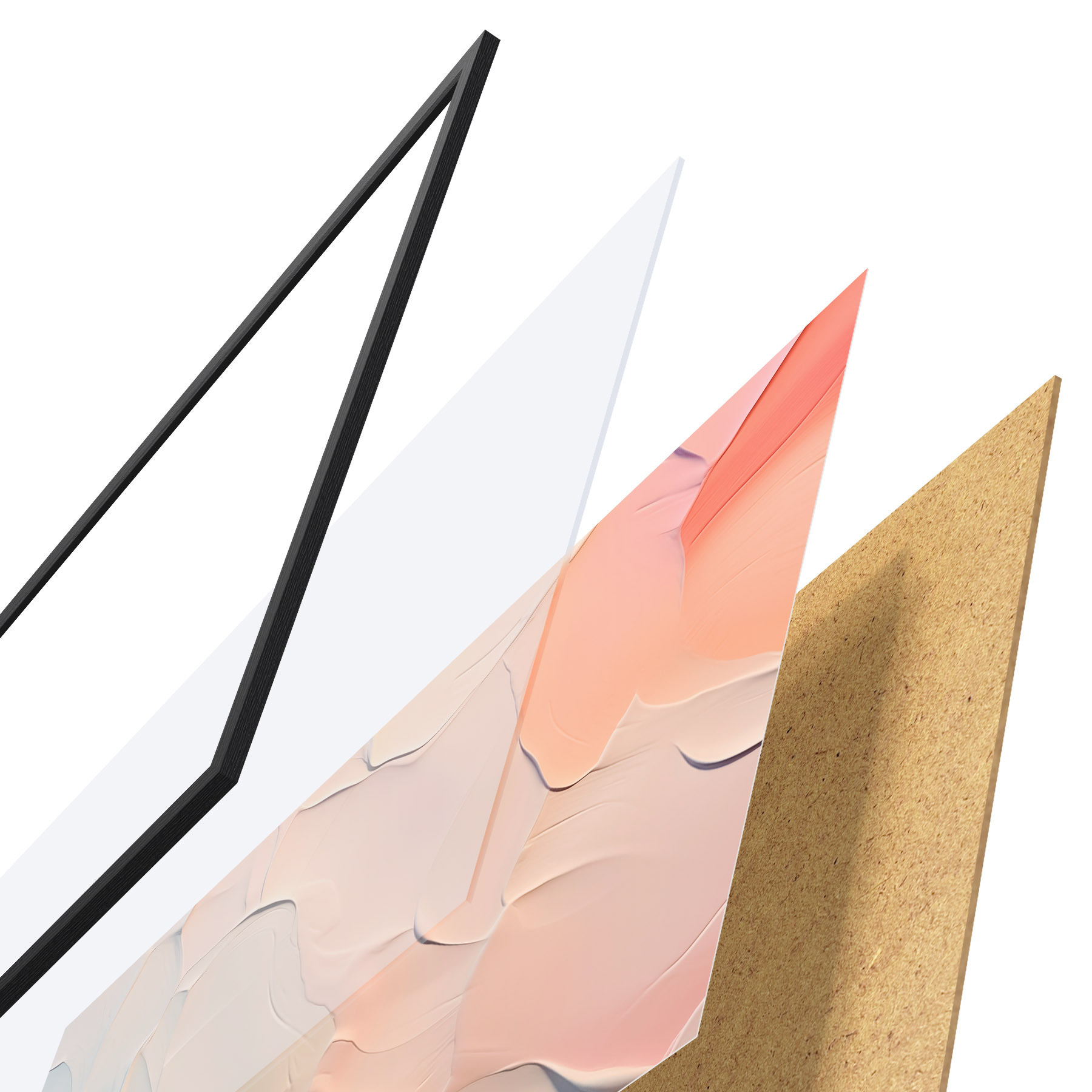Das Poster besteht aus einem Rahmen, Plexiglas, einem gedruckten Bild und einer Rückwand aus Spanplatten. Dank der Halterungen auf der Rückseite kann das Poster sofort an die Wand gehängt werden.