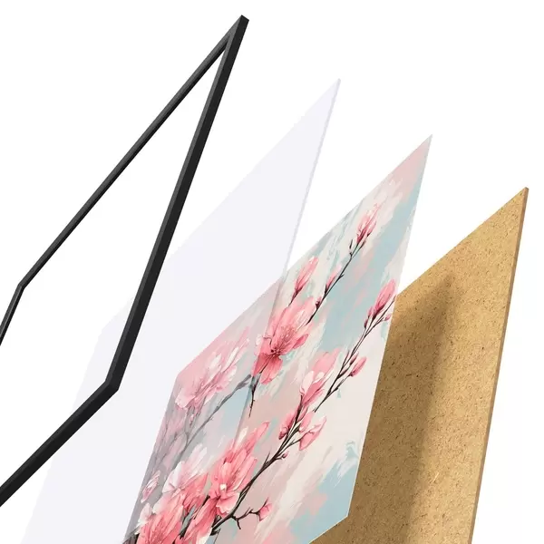 Das Poster besteht aus einem Rahmen, Plexiglas, einem gedruckten Bild und einer Rückwand aus Spanplatten. Dank der Halterungen auf der Rückseite kann das Poster sofort an die Wand gehängt werden.