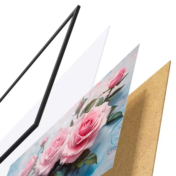 Das Poster besteht aus einem Rahmen, Plexiglas, einem gedruckten Bild und einer Rückwand aus Spanplatten. Dank der Halterungen auf der Rückseite kann das Poster sofort an die Wand gehängt werden.