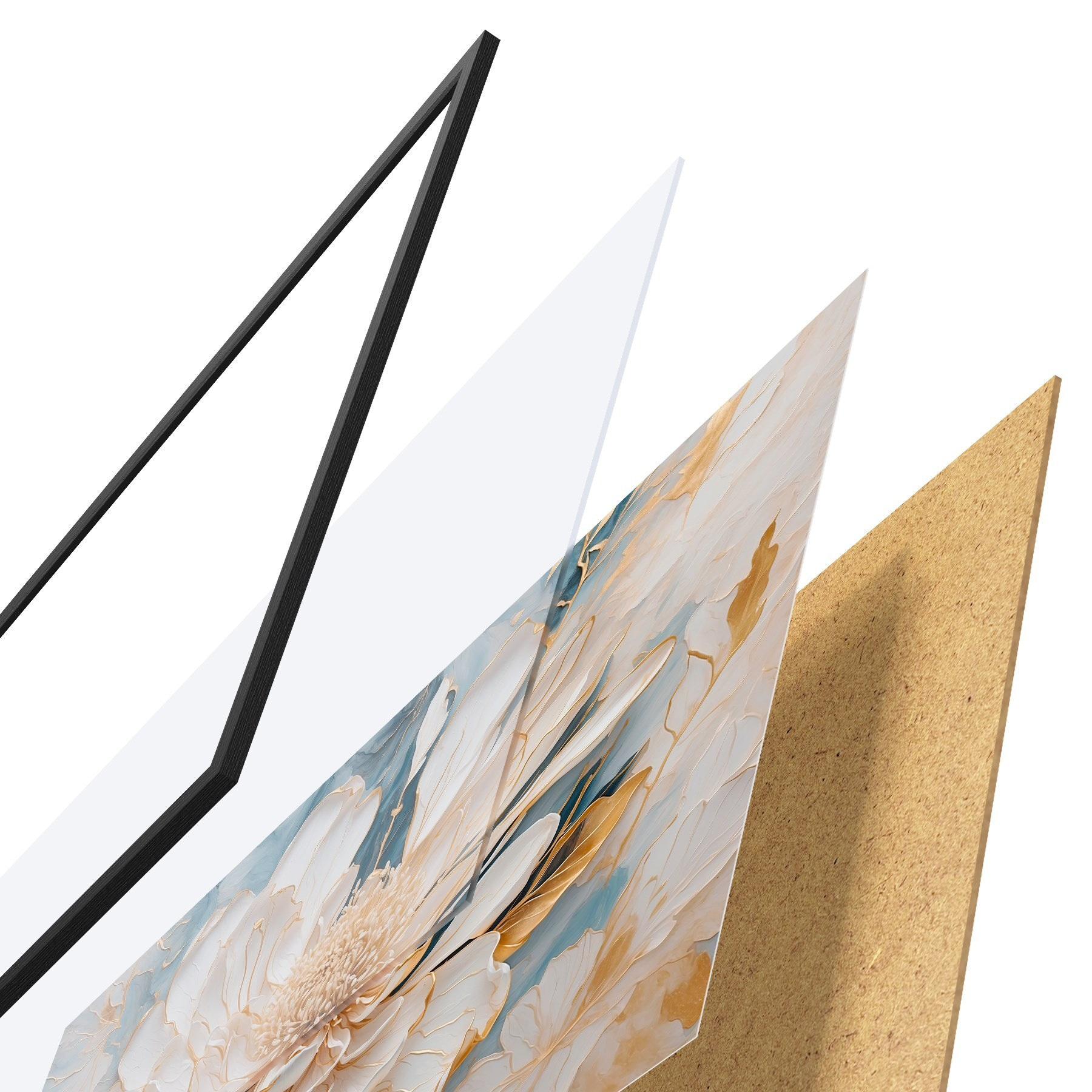 Das Poster besteht aus einem Rahmen, Plexiglas, einem gedruckten Bild und einer Rückwand aus Spanplatten. Dank der Halterungen auf der Rückseite kann das Poster sofort an die Wand gehängt werden.