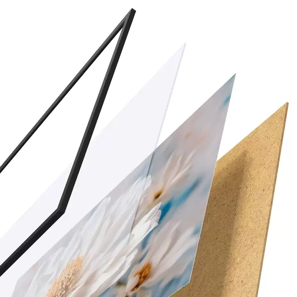Das Poster besteht aus einem Rahmen, Plexiglas, einem gedruckten Bild und einer Rückwand aus Spanplatten. Dank der Halterungen auf der Rückseite kann das Poster sofort an die Wand gehängt werden.