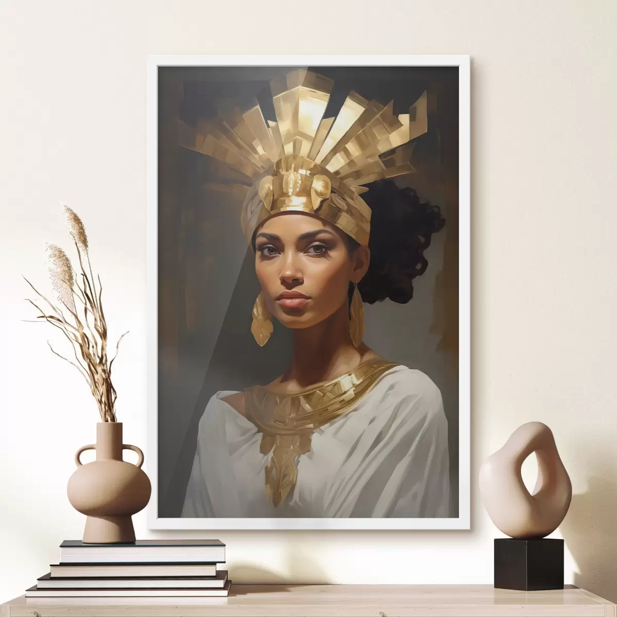Poster Porträt einer Frau mit majestätischem Kopfschmuck und traditionellen Ornamenten Nr f42931