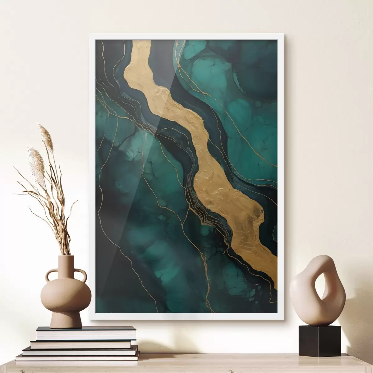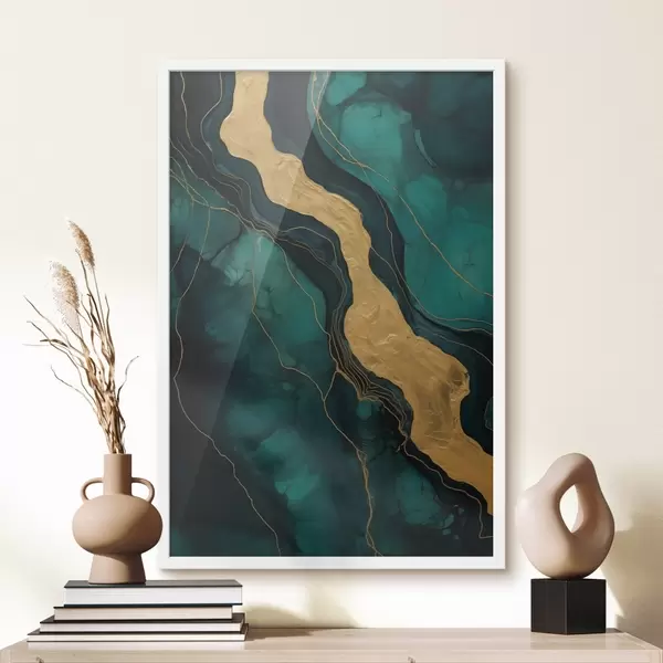 Poster Аbstract pattern mit tiefen Grüntönen und einem warmen Kontrastelement Nr f42934