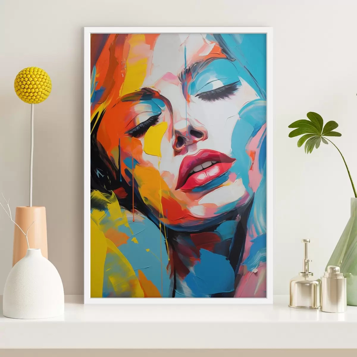 Poster Abstraktes Porträt einer Frau in ausdrucksstarken Farben Nr f42935