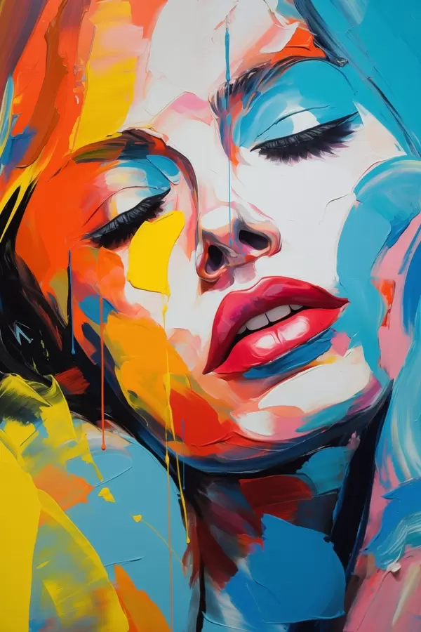 Poster Abstraktes Porträt einer Frau in ausdrucksstarken Farben Nr f42935
