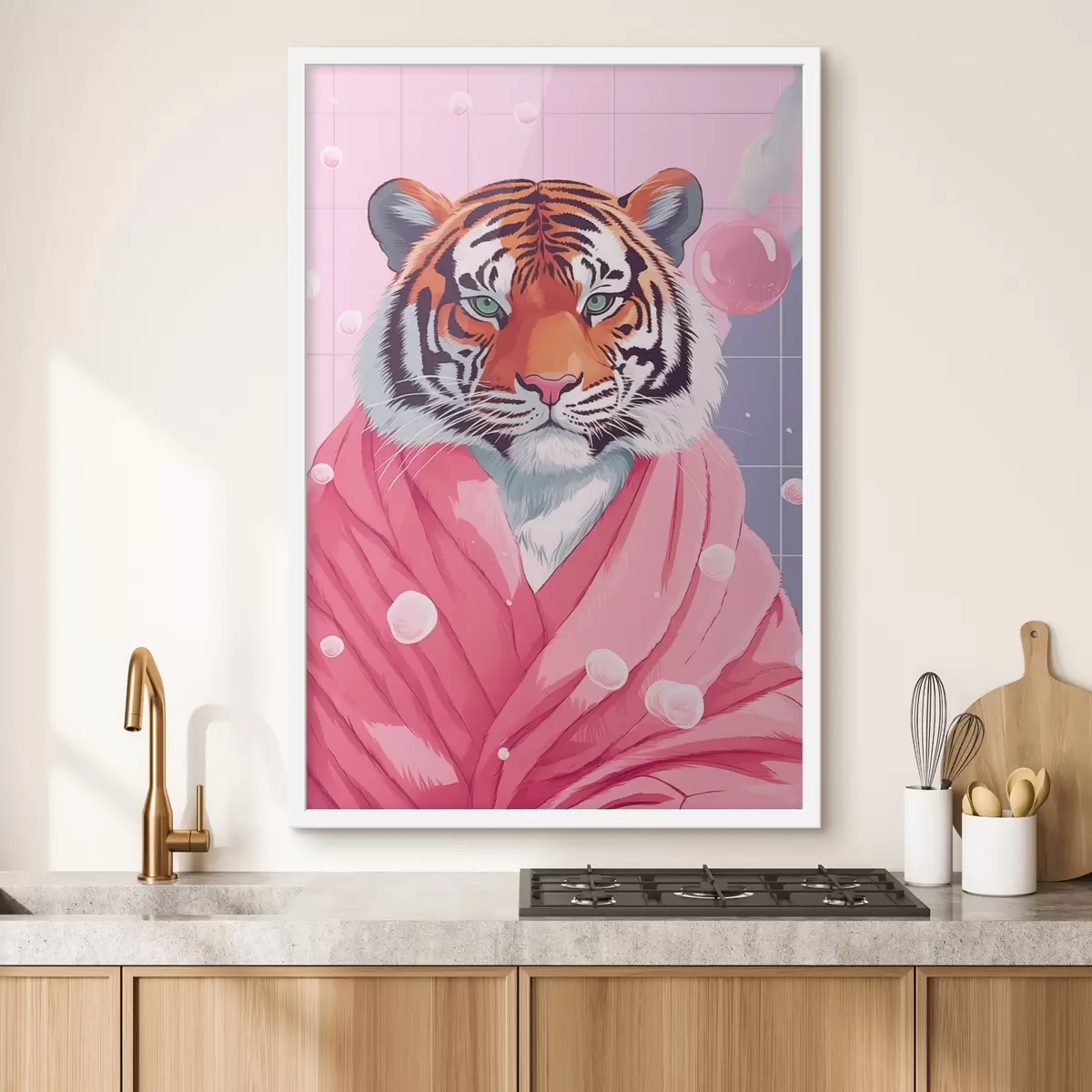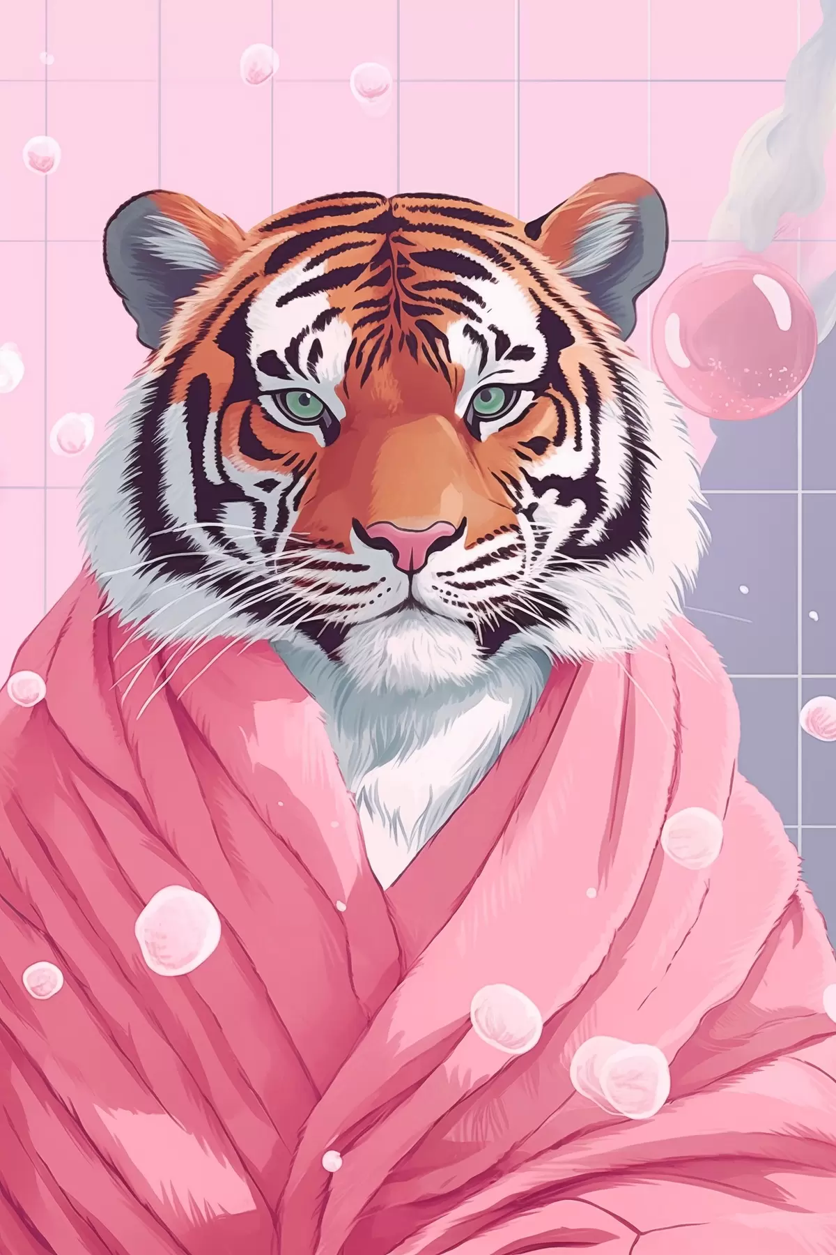 Poster Tiger in einem rosa Handtuch Nr f42942