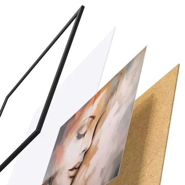 Das Poster besteht aus einem Rahmen, Plexiglas, einem gedruckten Bild und einer Rückwand aus Spanplatten. Dank der Halterungen auf der Rückseite kann das Poster sofort an die Wand gehängt werden.