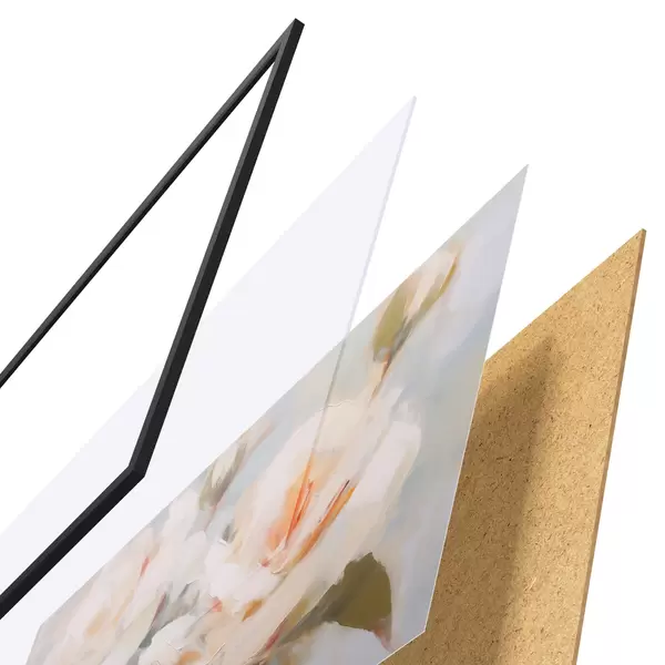 Das Poster besteht aus einem Rahmen, Plexiglas, einem gedruckten Bild und einer Rückwand aus Spanplatten. Dank der Halterungen auf der Rückseite kann das Poster sofort an die Wand gehängt werden.