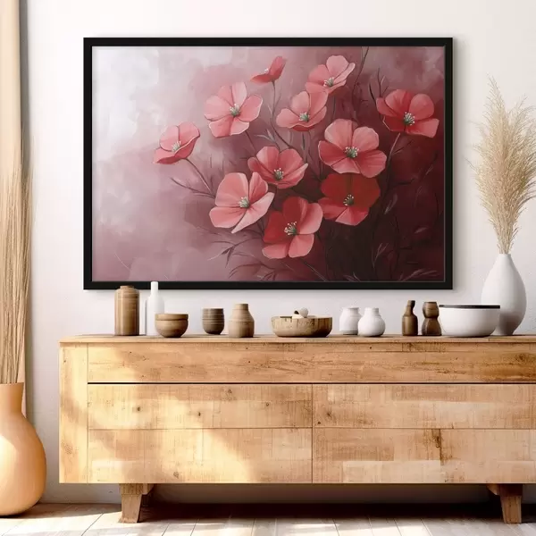 Poster Rote Blumen auf rotem Hintergrund Nr f42970