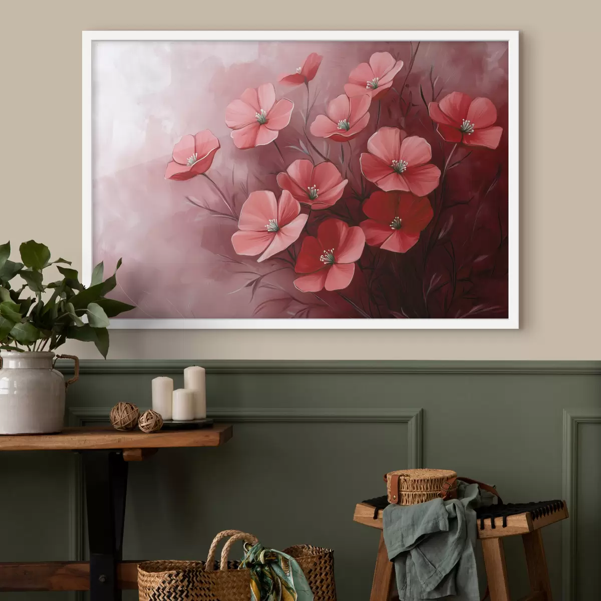 Poster Rote Blumen auf rotem Hintergrund f42970