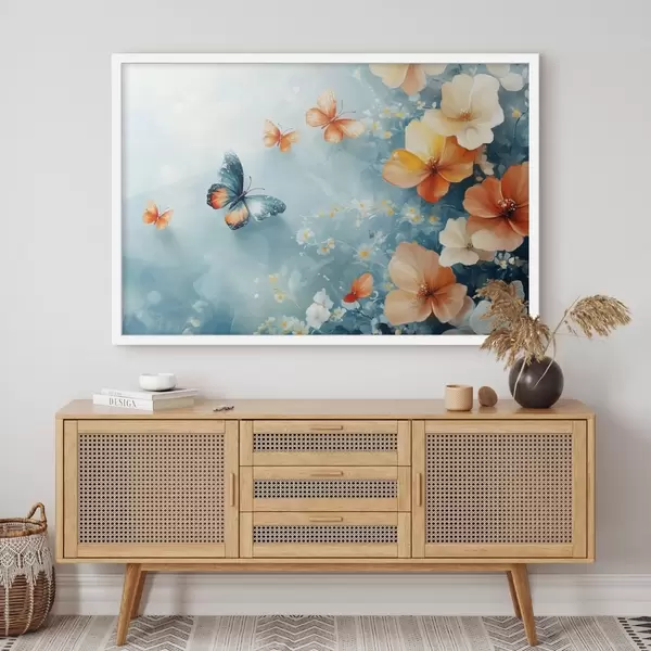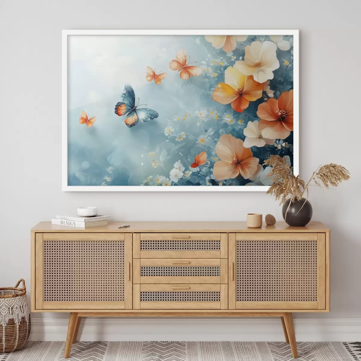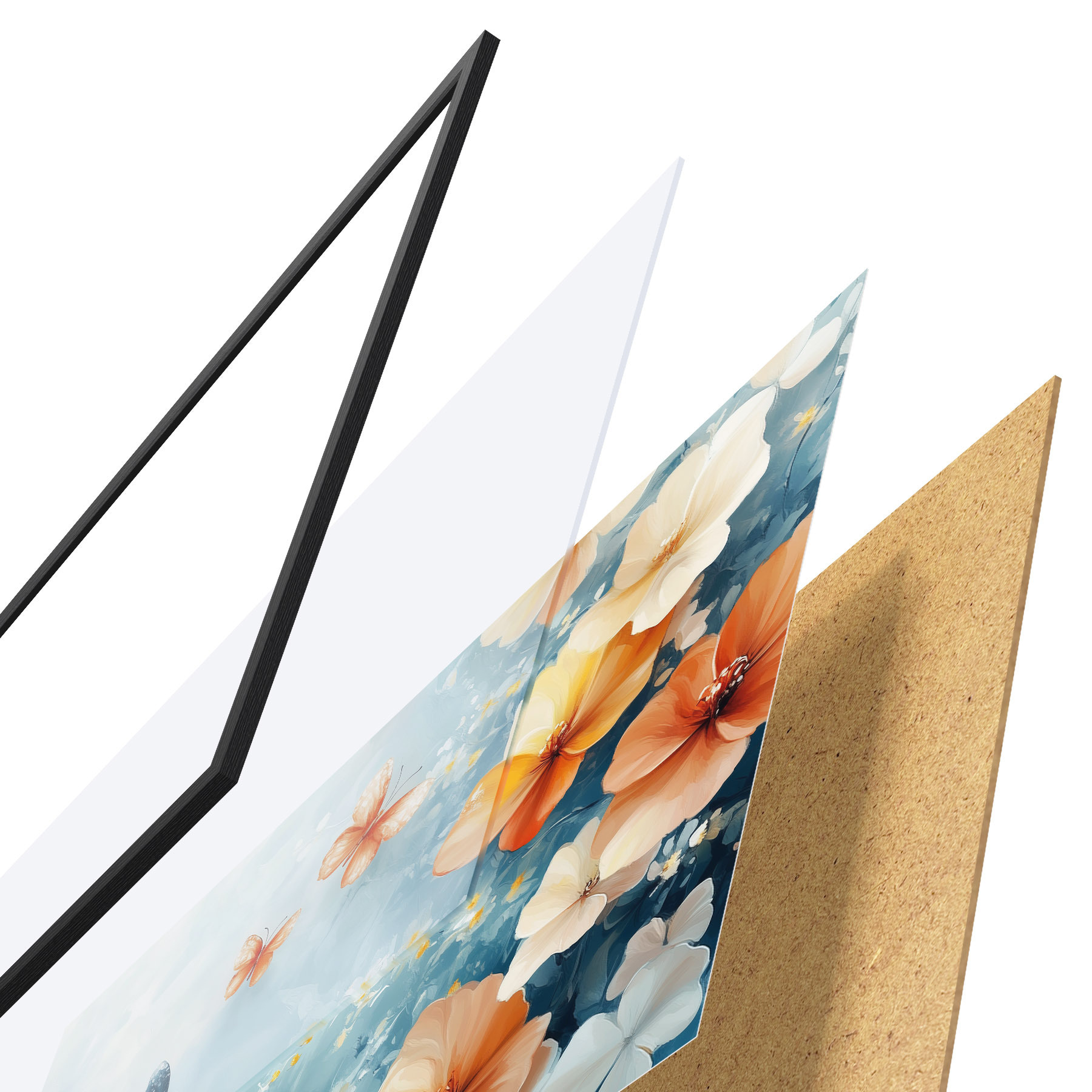 Poster Orangefarbene Blumen und Schmetterlinge Nr f42974