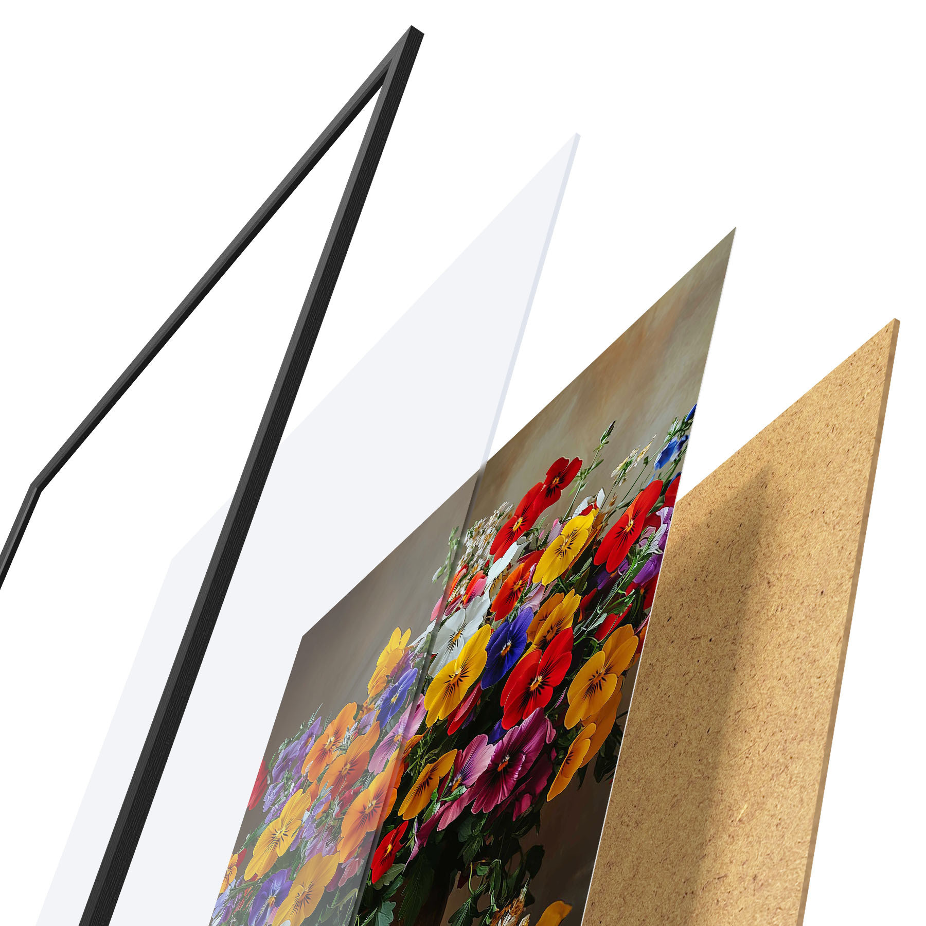 Das Poster besteht aus einem Rahmen, Plexiglas, einem gedruckten Bild und einer Rückwand aus Spanplatten. Dank der Halterungen auf der Rückseite kann das Poster sofort an die Wand gehängt werden.