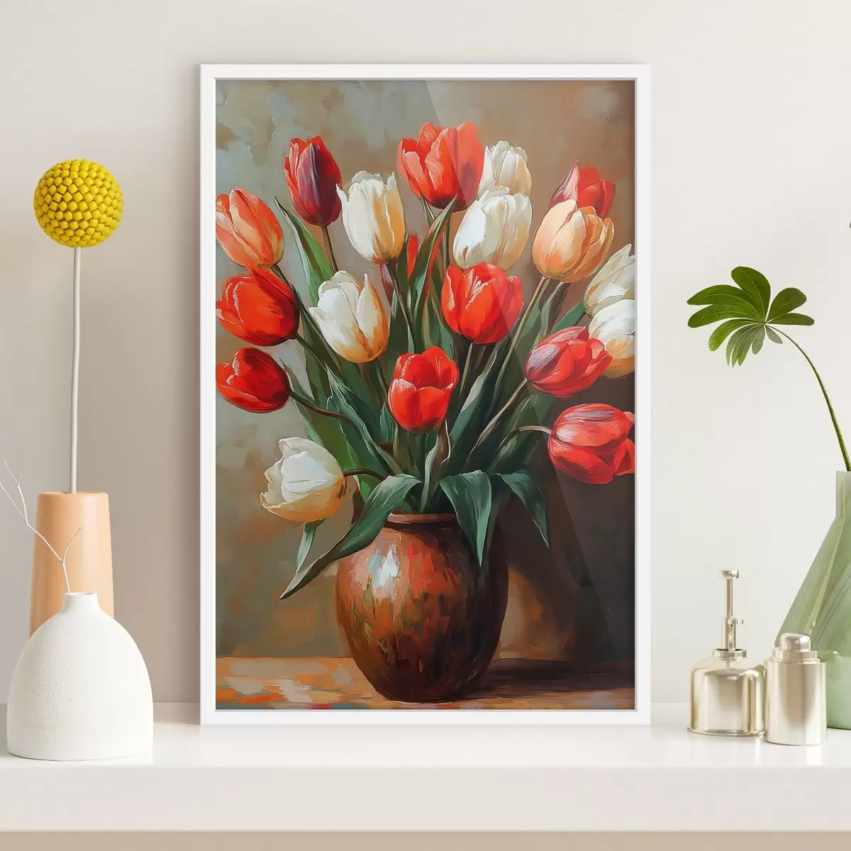 Poster Blumenstrauß aus roten und weißen Tulpen Nr f42981