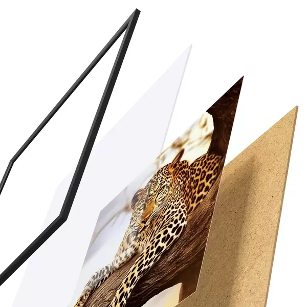 Das Poster besteht aus einem Rahmen, Plexiglas, einem gedruckten Bild und einer Rückwand aus Spanplatten. Dank der Halterungen auf der Rückseite kann das Poster sofort an die Wand gehängt werden.