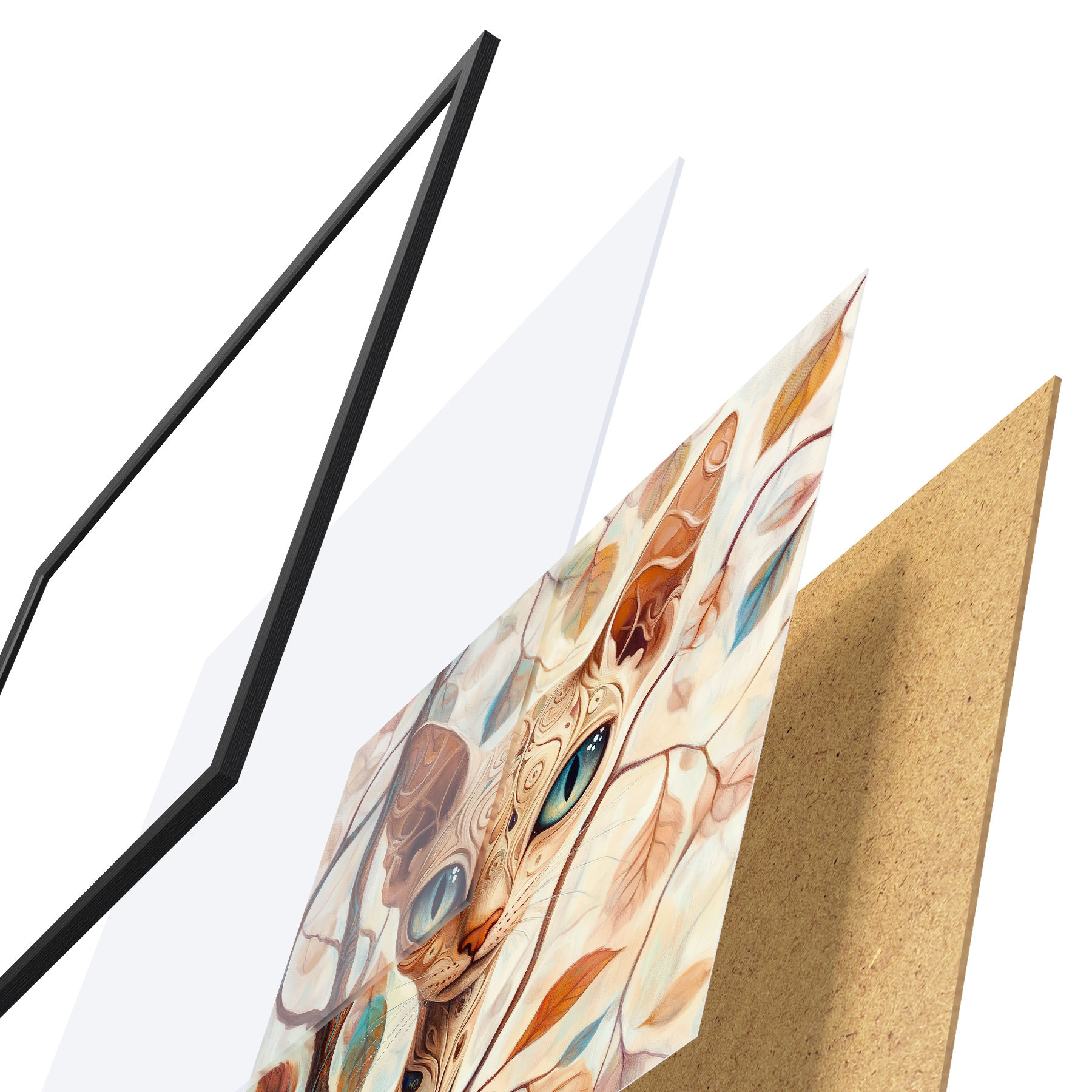 Das Poster besteht aus einem Rahmen, Plexiglas, einem gedruckten Bild und einer Rückwand aus Spanplatten. Dank der Halterungen auf der Rückseite kann das Poster sofort an die Wand gehängt werden.