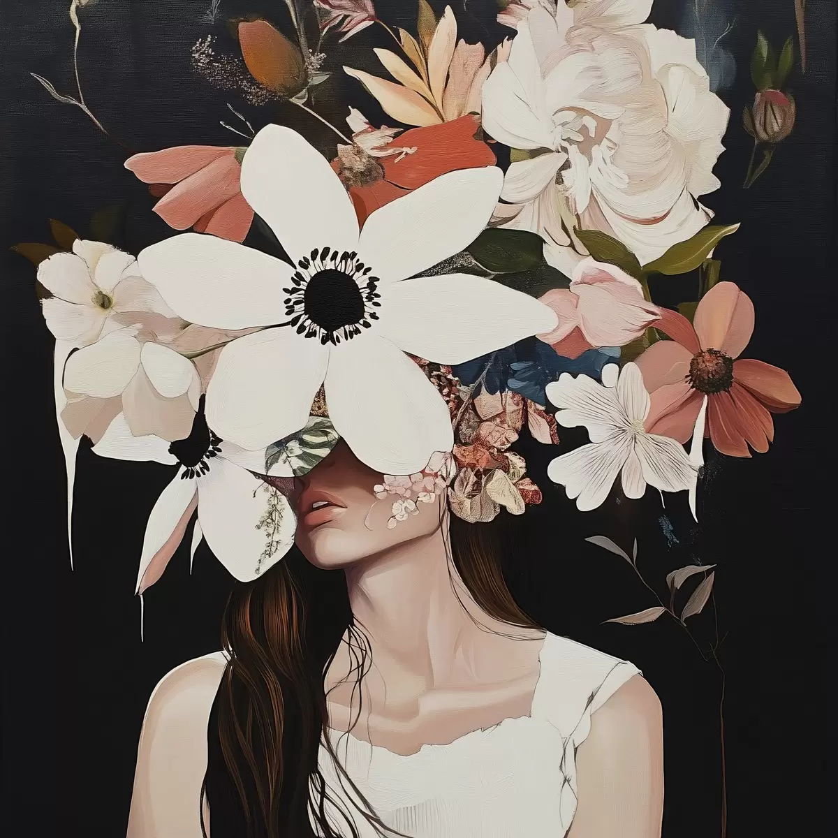 Poster Mädchen mit Blumen im Gesicht Nr f42989