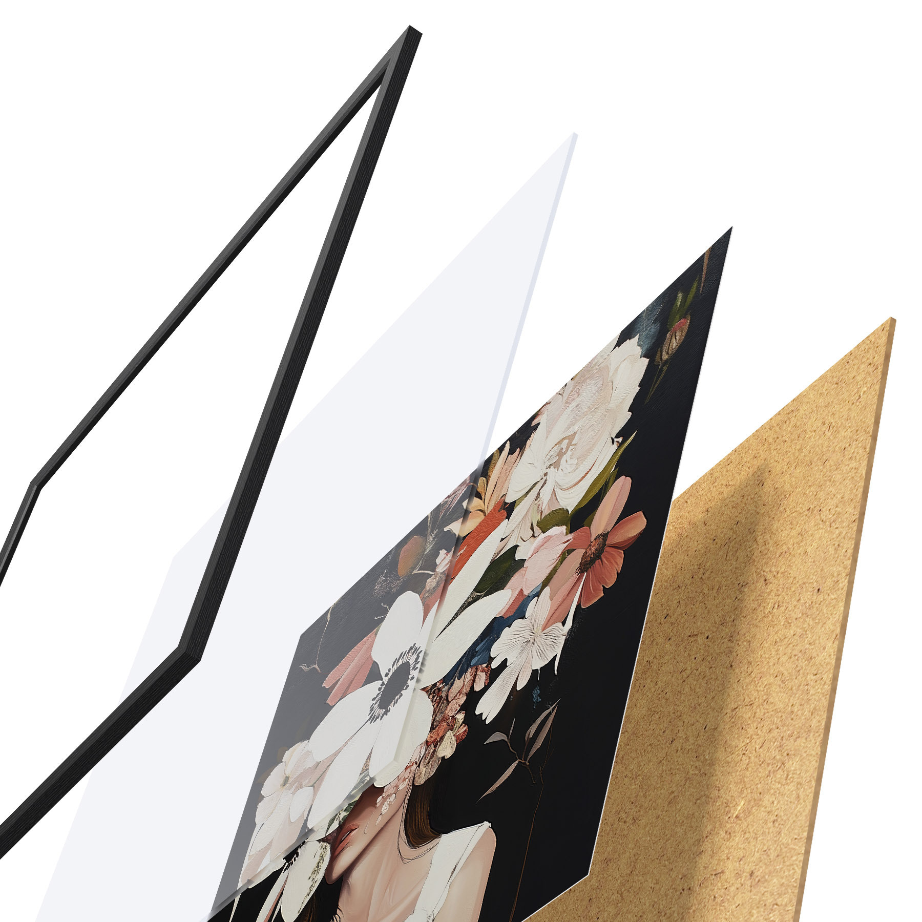 Das Poster besteht aus einem Rahmen, Plexiglas, einem gedruckten Bild und einer Rückwand aus Spanplatten. Dank der Halterungen auf der Rückseite kann das Poster sofort an die Wand gehängt werden.