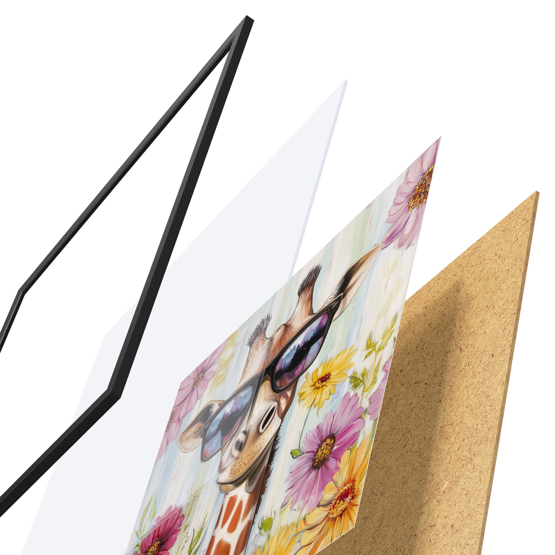 Poster Giraffe mit Brille in der Nähe von Blumen Nr f42991