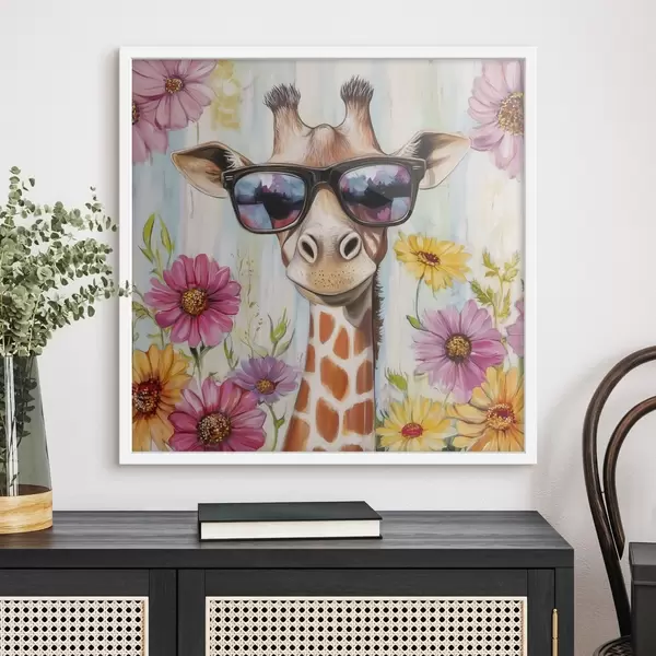 Poster Giraffe mit Brille in der Nähe von Blumen Nr f42991