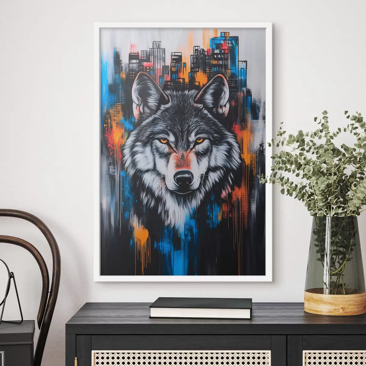 Poster Ein Wolf im Hintergrund der Stadt f42994