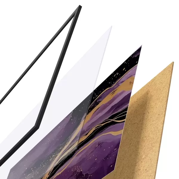 Das Poster besteht aus einem Rahmen, Plexiglas, einem gedruckten Bild und einer Rückwand aus Spanplatten. Dank der Halterungen auf der Rückseite kann das Poster sofort an die Wand gehängt werden.