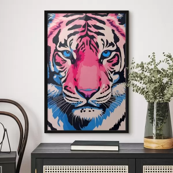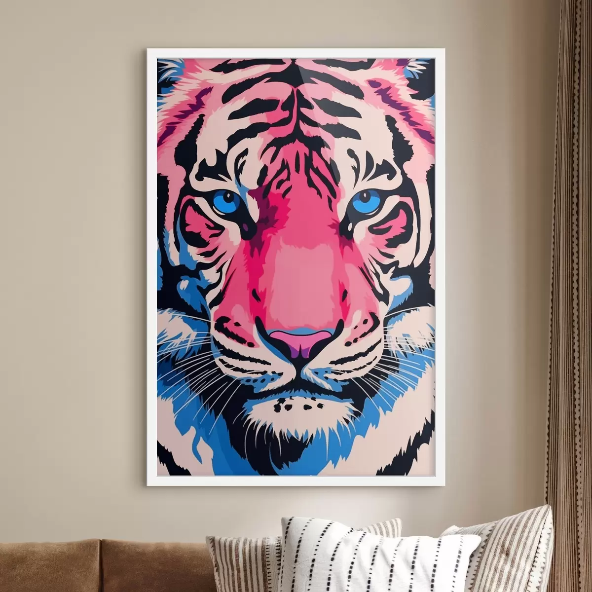 Poster Stilisiertes Porträt eines Tigers in hellen Farben f43007
