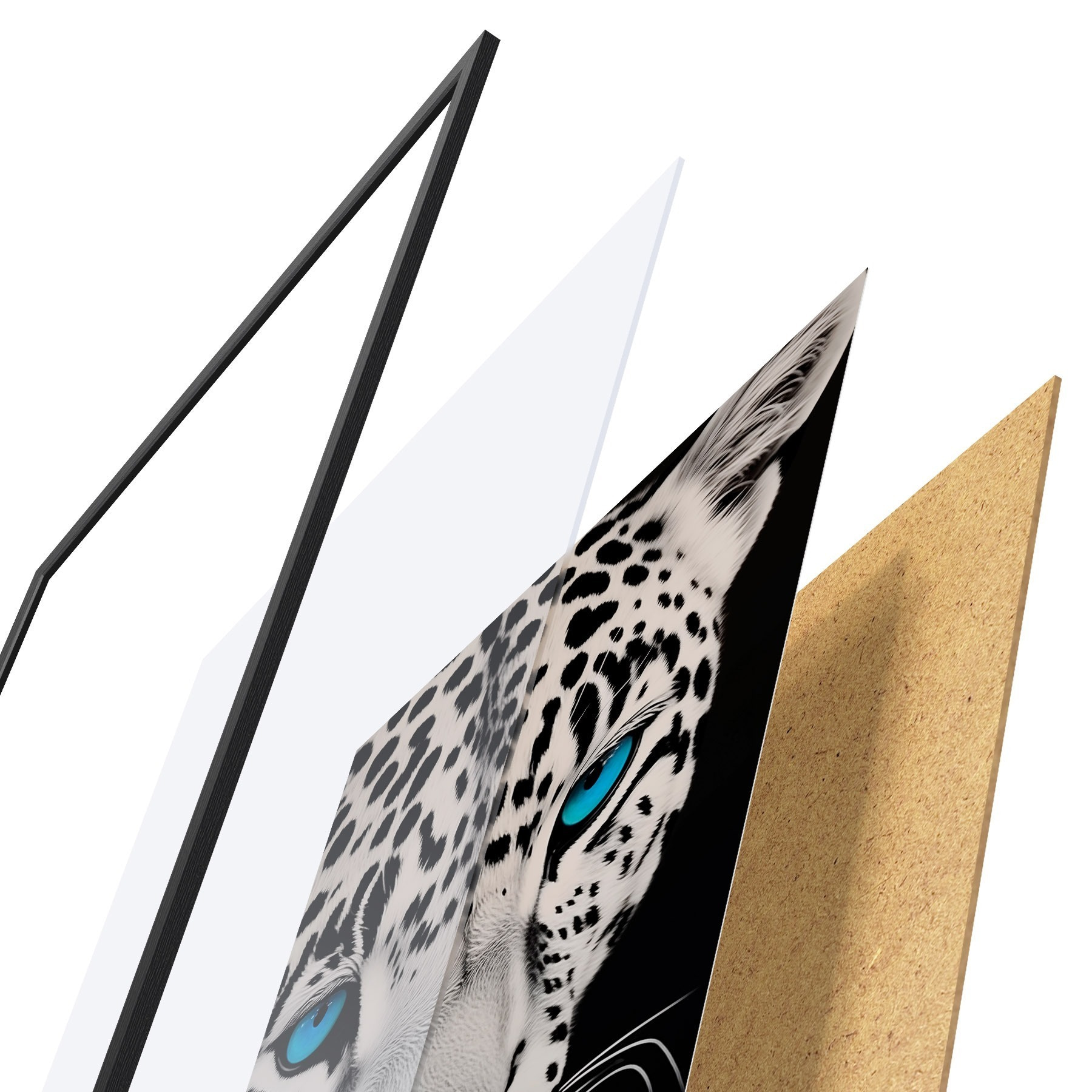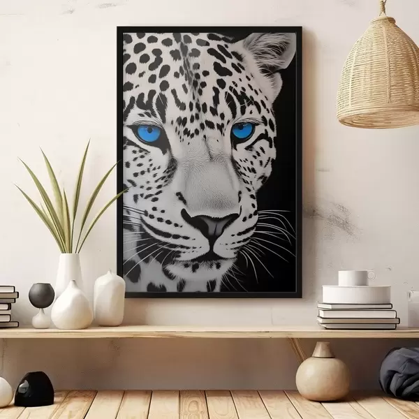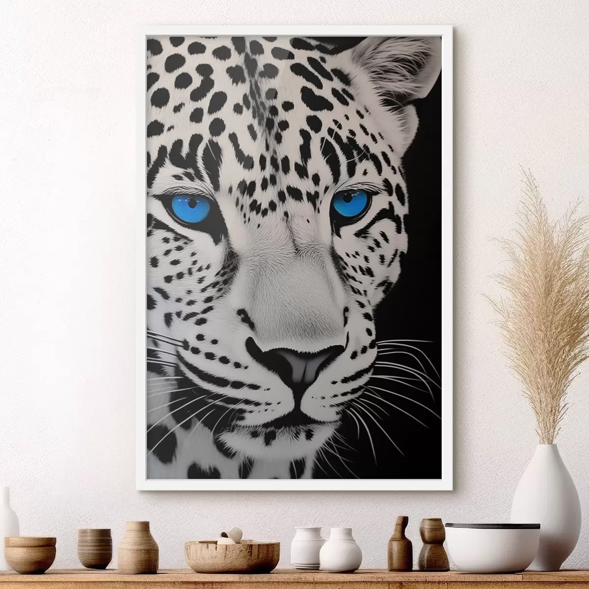 Poster Schwarz-Weiß-Porträt eines Leoparden mit blauen Augen Nr f43008