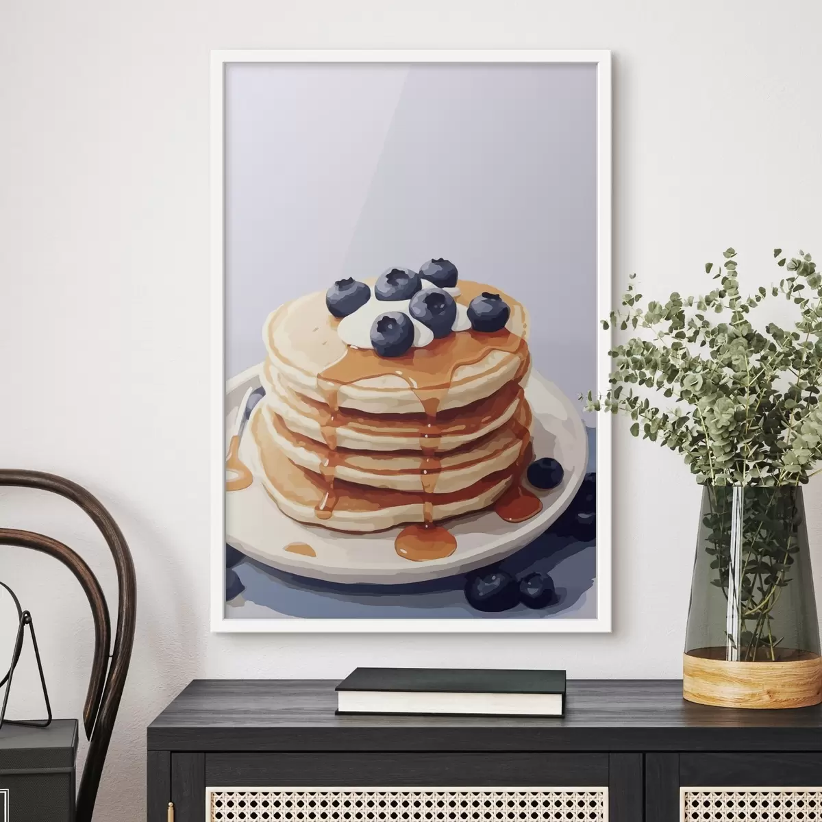Poster Pfannkuchen mit Sirup und Blaubeeren auf einem Teller Nr f43009