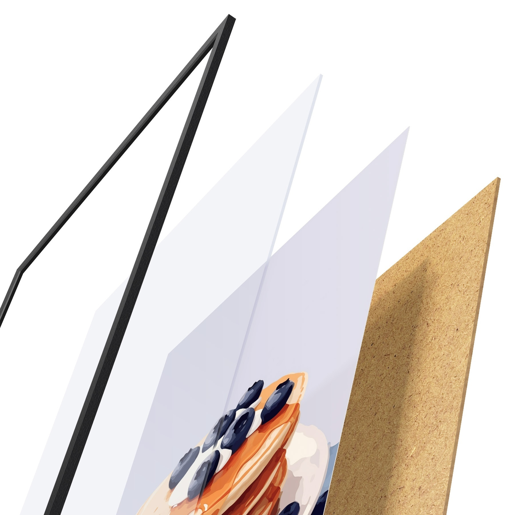 Das Poster besteht aus einem Rahmen, Plexiglas, einem gedruckten Bild und einer Rückwand aus Spanplatten. Dank der Halterungen auf der Rückseite kann das Poster sofort an die Wand gehängt werden.