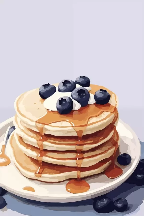 Poster Pfannkuchen mit Sirup und Blaubeeren auf einem Teller Nr f43009