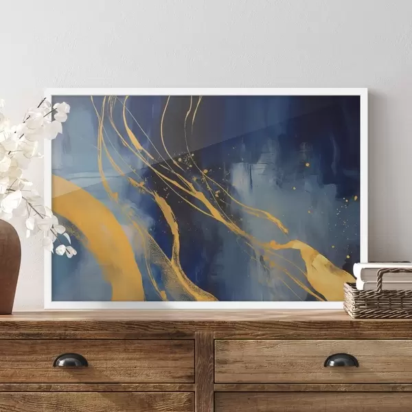 Poster Abstraktion in Blau- und Gelbtönen f43014