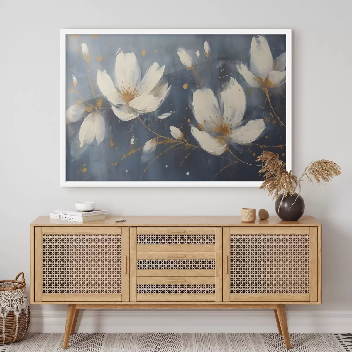 Poster Weiße Blumen auf blauem Hintergrund Nr f43025