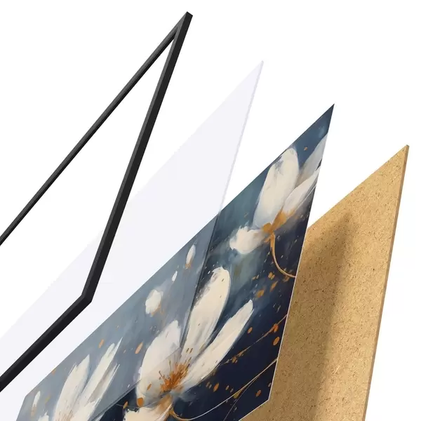 Das Poster besteht aus einem Rahmen, Plexiglas, einem gedruckten Bild und einer Rückwand aus Spanplatten. Dank der Halterungen auf der Rückseite kann das Poster sofort an die Wand gehängt werden.